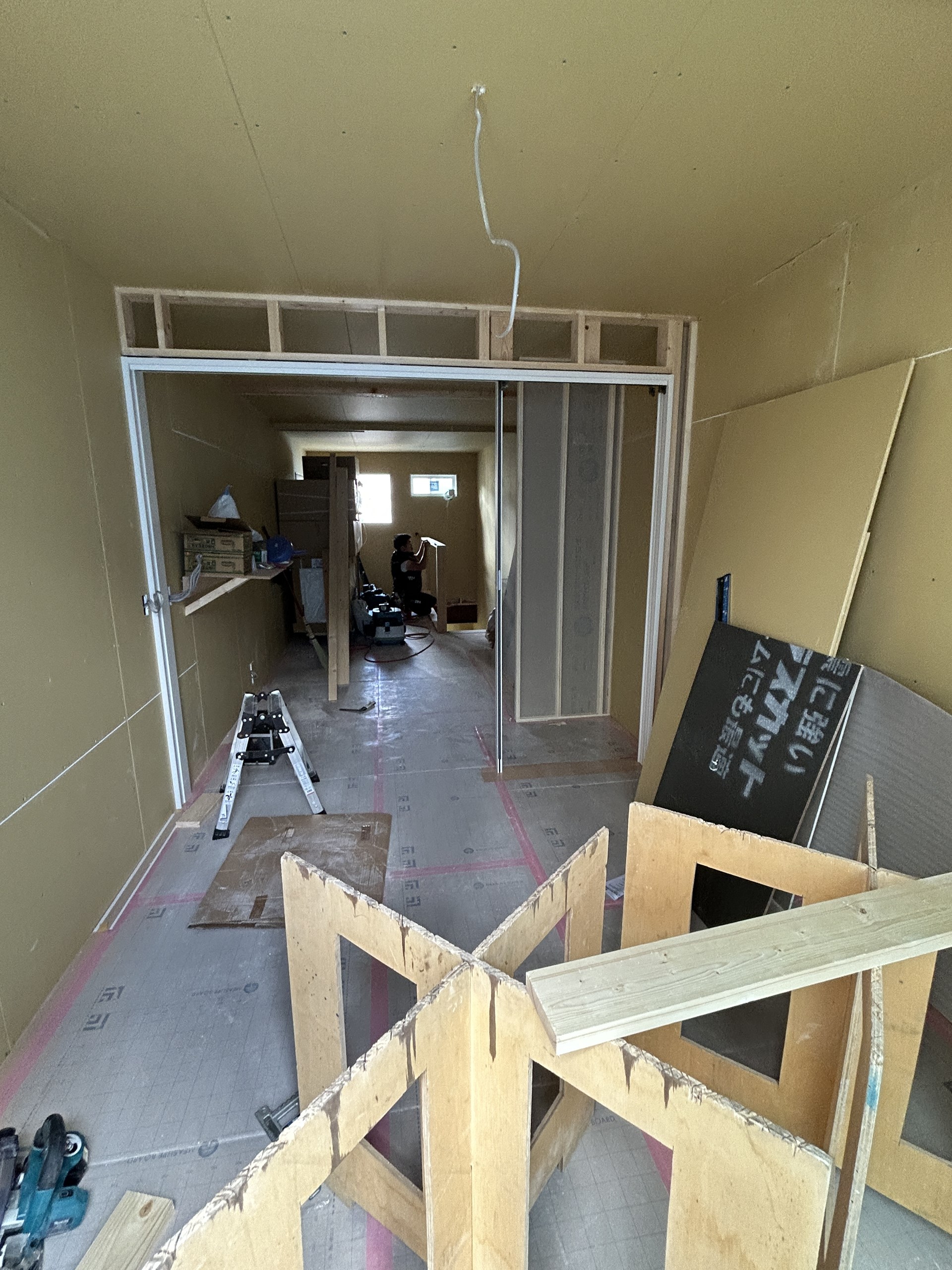 壁もできあがり、工事も残りあと少し。