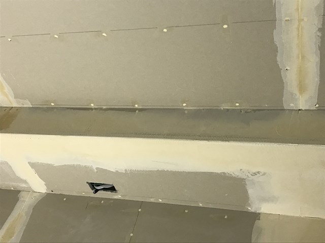 ボードのジョイント部分やビス部分にパテを塗り、