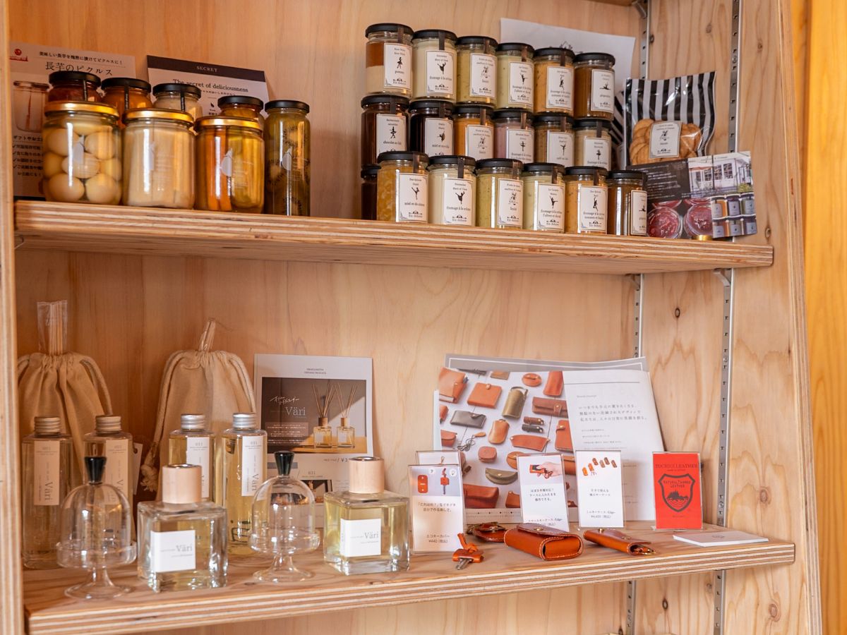 お店でも使用している雑貨や食品もお買い求め頂けるようディスプレイされております!